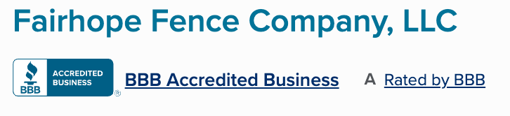 At Fairhope Fence Company LLC, fencing is more than just our trade — it’s our family tradition. As a family-owned and operated business, we take pride in bringing honest work, dependable service, and true Southern hospitality to every job we take on. We're also A rated by BBB.